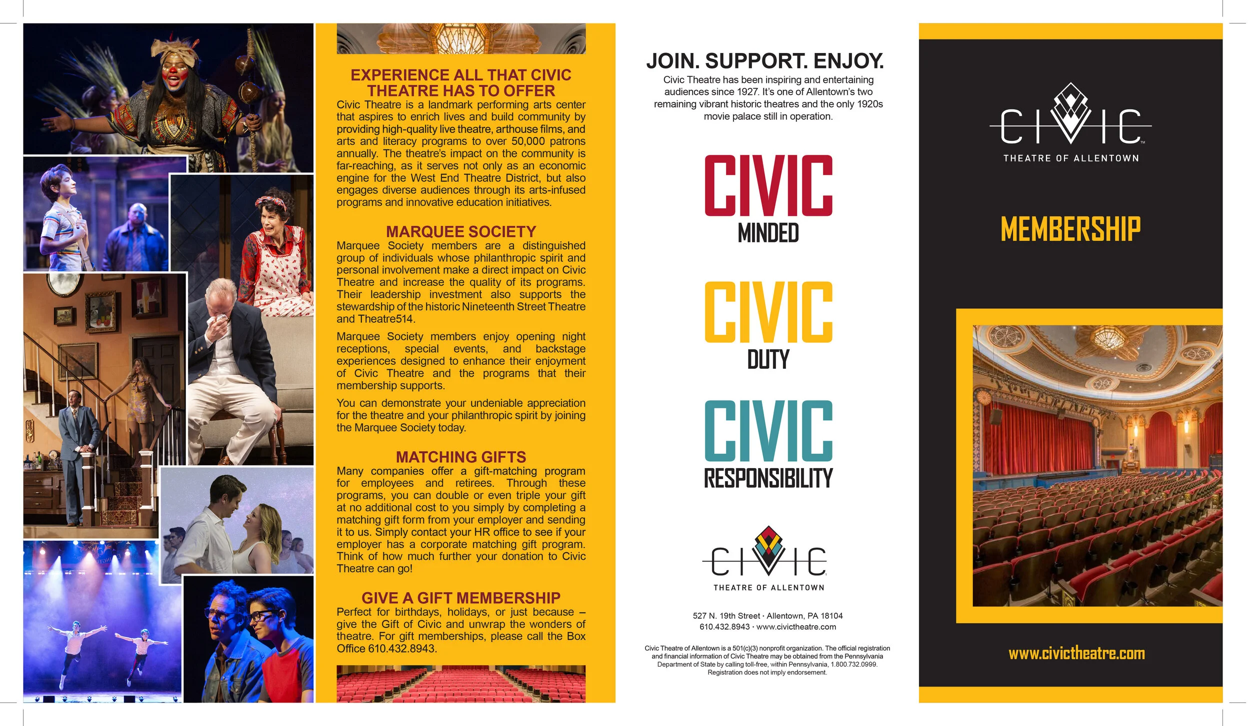 I worked at the Civic Theatre of Allentown, Pennsylvania from 2018 until 2020 when it was shut down due to the Coronavirus Pandemic. It was a wonderful opportunity for me to expand my graphic design skills and further my horizons with a variety of different projects ranging from social media to print marketing campaigns. Since this was a non-profit, I created a lot of promotional material for capital campaigns, fundraisers, and donor initiatives.